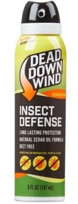 Dead Down Wind Field Spray - Natural Woods. Sign in or Register. Dead Down Wind 13700 Insect Defense Bug Spray 5 Oz Cedar ScentDead Down Wind Now offers insect Protection For Hunters. Helps prevent insect bites when youre outside in the woods hiking camping hunting and more.